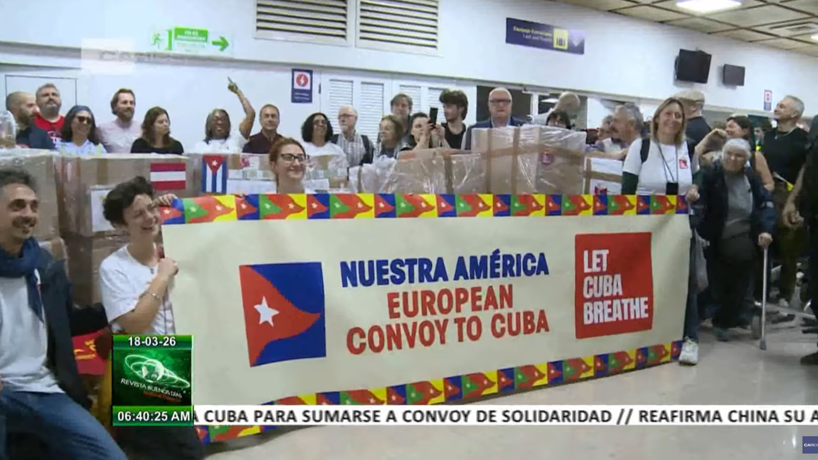 Έφτασε στην Κούβα στις 17 Μάρτη διεθνές κομβόι αλληλεγγύης, στο οποίο συμμετέχουν οργανώσεις και Σύνδεσμοι Αλληλεγγύης από πολλές ευρωπαϊκές χώρες, μεταφέροντας φάρμακα, ιατρικά υλικά, τρόφιμα, ηλιακά πάνελ κ.ά., και απαιτώντας τον άμεσο τερματισμό του βάρβαρου αποκλεισμού από τις ΗΠΑ.Εκπροσωπώντας τον Ελληνοκουβανικό Σύνδεσμο Φιλίας και Αλληλεγγύης, στο κομβόι συμμετέχει το μέλος του ΔΣ, Δέσποινα Μάρκου, η οποία μετέφερε φάρμακα και το πρώτο ποσό από την οικονομική καμπάνια του Συνδέσμου. Σε δηλώσεις της στην κουβανική τηλεόραση αφιέρωσε την αποστολή και την όλη προσπάθεια αλληλεγγύης που συνεχίζεται «στα πάνω από 67 χρόνια των αγώνων του κουβανικού λαού, που είναι ένα παράδειγμα για όλους στον αγώνα που δίνουμε στις χώρες μας».Τα μέλη της αποστολής υποδέχτηκε στο αεροδρόμιο της Αβάνας, ο Ροντρίγκο Ζάρζα, διευθυντής για την Ευρώπη του Κουβανικού Ινστιτούτου Φιλίας των Λαών (ICAP). Αφού εξέφρασε τις ευχαριστίες του κουβανικού λαού, τόνισε ότι «δεν πρόκειται μόνο για υλική υποστήριξη, αλλά αποτελεί απόδειξη ότι υπάρχει μεγάλη ευαισθητοποίηση εντός του κινήματος αλληλεγγύης σχετικά με την ιδιαίτερη κατάσταση που βιώνουμε από ενεργειακής άποψης, λόγω του Εκτελεστικού Διατάγματος με το οποίο η κυβέρνηση των ΗΠΑ κήρυξε την Κούβα “ασυνήθιστη και εξαιρετική απειλή”, καθώς η αποστολή περιλαμβάνει επίσης ηλιακούς συλλέκτες και φωτοβολταϊκά συστήματα, τα οποία θα βοηθήσουν ορισμένα από τα υγειονομικά μας ιδρύματα».Υπενθυμίζεται ότι η κυβέρνηση των ΗΠΑ αυξάνει καθημερινά τις πιέσεις ενάντια στην Κούβα, κάνοντας όλο και πιο ασφυκτικό τον εγκληματικό υπερεξηντάχρονο αποκλεισμό που έχει επιβάλει η Ουάσινγκτον στο Νησί της Επανάστασης. Το μπλοκάρισμα στην προμήθεια καυσίμων που έχει επιβληθεί μετά την αμερικανική ιμπεριαλιστική επέμβαση στη Βενεζουέλα στις αρχές Γενάρη δημιουργεί τεράστια προβλήματα στην ηλεκτροδότηση, στην υδροδότηση, στη διατροφή και όλους τους τομείς της κοινωνικής ζωής.Αυτή η κατάσταση έχει ενεργοποιήσει σε όλο τον κόσμο τις οργανώσεις αλληλεγγύης στην Κουβανική Επανάσταση, που συγκεντρώνουν βοήθεια όπως συμβαίνει και στη χώρα μας με τον λογαριασμό που έχει δημιουργήσει ο Ελληνοκουβανικός Σύνδεσμος (Εθνική Τράπεζα ΙΒΑΝ GR19 0110 1290 0000 1290 0104 998).Ακόμα, το Πανεργατικό Αγωνιστικό Μέτωπο έχει καλέσει τα συνδικάτα να συγκεντρώσουν οικονομική βοήθεια που θα παραδοθεί στην Κούβα.