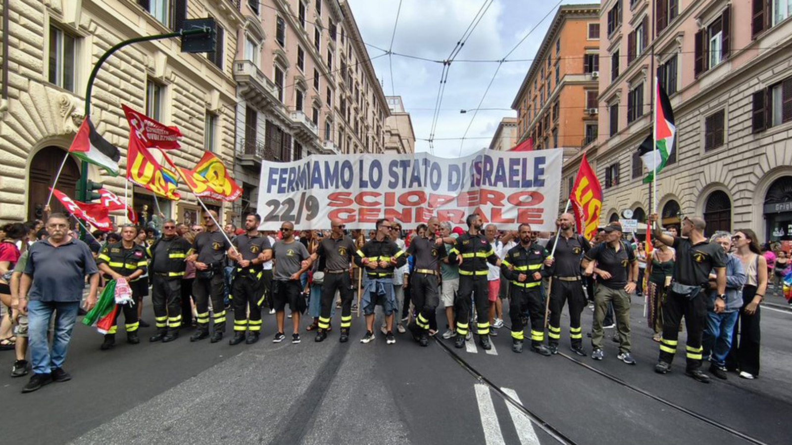 Με τα χρώματα της Παλαιστίνης βάφτηκε χθες απ’ άκρη σ’ άκρη όλη η Ιταλία, με εκατοντάδες χιλιάδες απεργούς και διαδηλωτές να εκφράζουν την αλληλεγγύη τους στον παλαιστινιακό λαό, μετά από κάλεσμα για 24ωρη απεργία της Ένωσης Συνδικάτων Βάσης (USB) και άλλων ιταλικών συνδικαλιστικών οργανώσεων.Είχαν προηγηθεί απεργιακές και άλλες κινητοποιήσεις με το ίδιο περιεχόμενο τις προηγούμενες μέρες και την Παρασκευή.Με συνθήματα ενάντια στη γενοκτονία στη Γάζα, κατά της πολύμορφης στήριξης της ιταλικής κυβέρνησης στο ισραηλινό κράτος – δολοφόνο, αλλά και συνολικότερα ενάντια στην πολεμική οικονομία, διαδηλώσεις έγιναν σε περισσότερες από 80 ιταλικές πόλεις, σχολεία έμειναν κλειστά, δρομολόγια σε μέσα μαζικής μεταφοράς ακυρώθηκαν.Απεργοί λιμενεργάτες απέκλεισαν δρόμους πρόσβασης σε λιμάνια, δηλώνοντας ότι δεν θέλουν η χώρα τους να χρησιμεύει ως ενδιάμεσος σταθμός για τη μεταφορά όπλων και άλλων προμηθειών στο Ισραήλ.Στη Γένοβα διαδηλωτές κυμάτιζαν την παλαιστινιακή σημαία κατά τη διάρκεια συγκεντρώσεων νωρίς το πρωί γύρω από το λιμάνι.Στην πόλη Λιβόρνο της Τοσκάνης, μια είσοδος στο λιμάνι μπλοκαρίστηκε από διαμαρτυρόμενους εργάτες. Παρόμοια διαμαρτυρία πραγματοποιήθηκε επίσης στην Τεργέστη.Στη Ρώμη, οι απεργοί διαδηλωτές μπλόκαραν την είσοδο στον κεντρικό σιδηροδρομικό σταθμό της πόλης «Στατσιόνε Τέρμινι».