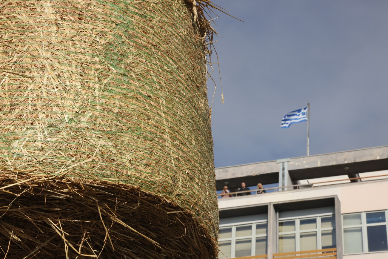 Μάλιστα οι συγκεντρωμένοι σε ένδειξη διαμαρτυρίας έριξαν γάλα, άχυρα, ντομάτες και σταφύλια, στην πόρτα του κεντρικού κτιρίου.