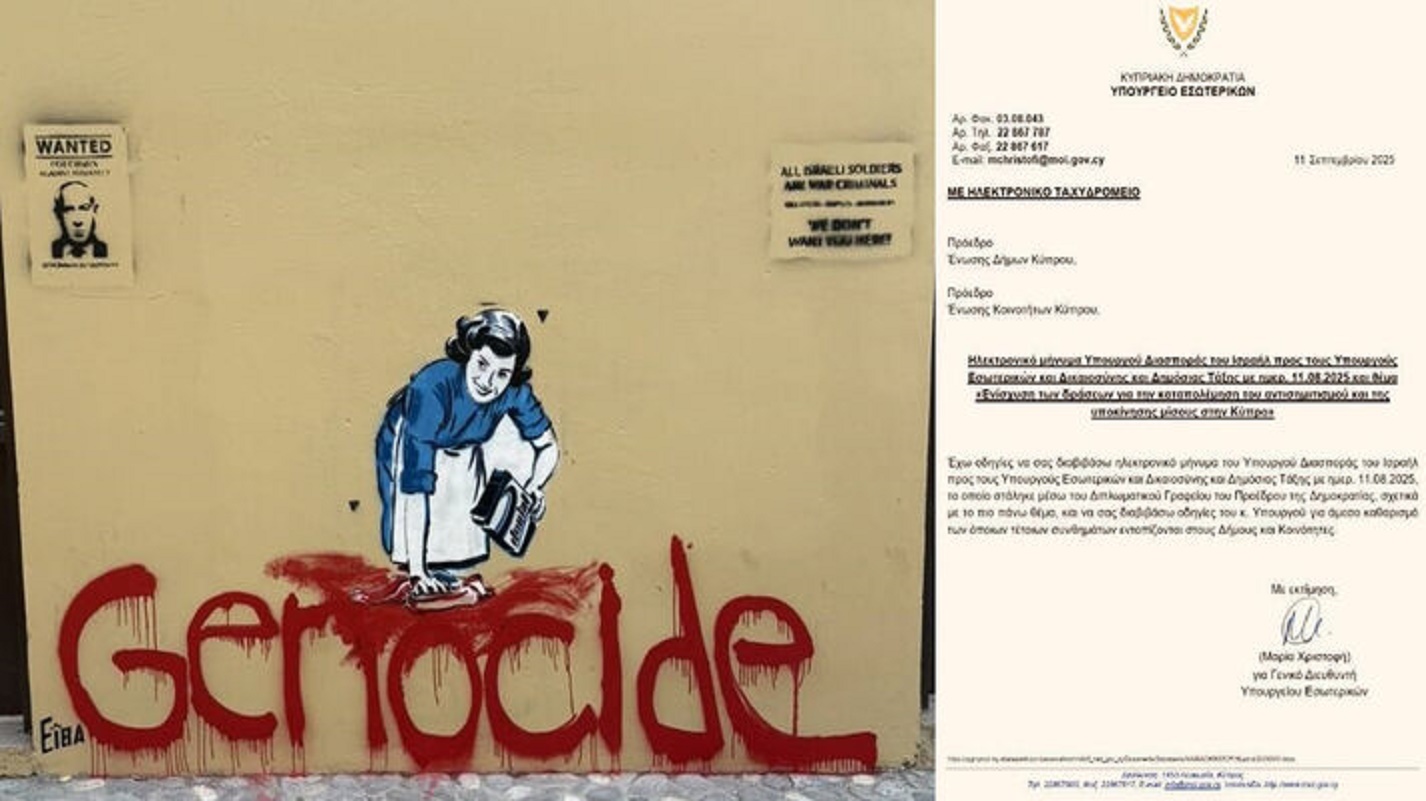 Mε μια κατάπτυστη εγκύκλιο που απέστειλε το διπλωματικό γραφείο του προέδρου της Κυπριακής Δημοκρατίας προς τους δήμους, τους διατάζει να σβήσουν οποιαδήποτε συνθήματα υπάρχουν στους τοίχους, με τα οποία καταδικάζεται η γενοκτονία που διαπράττει το Ισραήλ σε βάρος του Παλαιστινιακού λαού. Μάλιστα, όπως καταγγέλλεται, η σχετική εγκύκλιος στάλθηκε μετά από «εντολή» του υπουργείου Διασποράς του Ισραήλ προς την κυβέρνηση της Κύπρου που -όπως και η ελληνική- έχει «στρατηγική συνεργασία» με το κράτος-δολοφόνο.