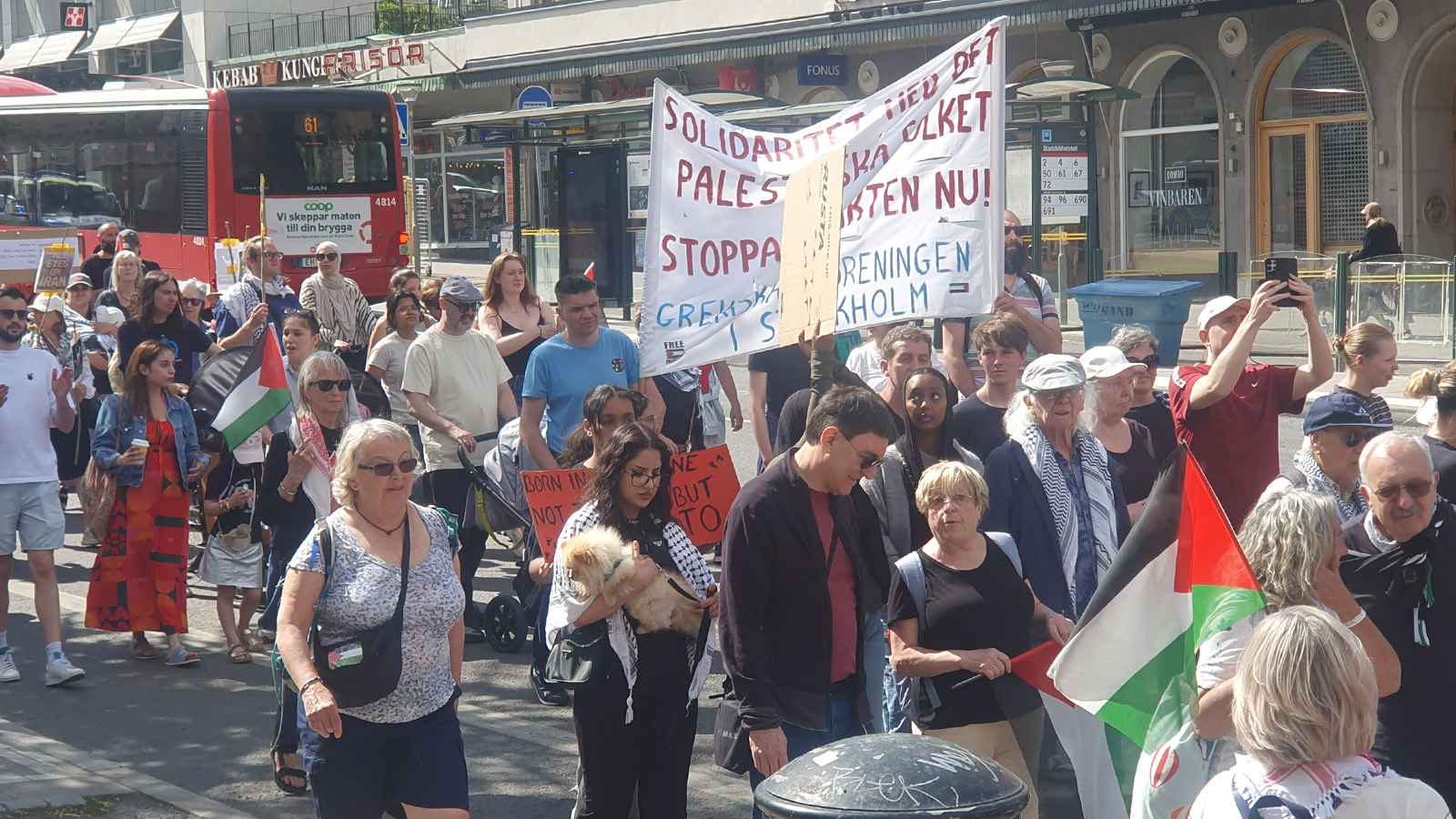 Χιλιάδες κόσμου πήραν μέρος στη διαδήλωση στο κέντρο της Στοκχόλμης για να εκφράσουν τη συνεχιζόμενη αλληλεγγύη τους στον Παλαιστινιακό λαό αλλά και σε όλους τους λαούς στη Μέση Ανατολή και να καταδικάσουν τη συνεχιζόμενη γενοκτονία των Παλαιστινίων από το ισραηλινό κράτος – δολοφόνο και την επίθεση των ΗΠΑ – Ισραήλ εναντίον του Ιράν.Οι διαδηλωτές κατήγγειλαν τις ΗΠΑ, την ΕΕ και τη σουηδική κυβέρνηση που συμμετέχουν με το να μην καταδικάζουν το κράτος-δολοφόνο του Ισραήλ που σκοτώνει χιλιάδες παιδιά, γυναίκες και αμάχους, ενώ καταδίκασαν και τις τελευταίες επιθέσεις από το Ισραήλ κατά του Ιράν.Στην κινητοποίηση μαζική ήταν και η παρουσία Ελλήνων μεταναστών της Ελληνικής Κοινότητας Στοκχόλμης με δικό της μπλοκ, που συμμετέχει συχνά στις κινητοποιήσεις για την αλληλεγγύη στον Παλαιστινιακό λαό. Την ίδια στιγμή, άρθρο της σουηδικής καθημερινής εφημερίδας Dagens Nyheter ενημερώνει πως όλα τα κόμματα της χώρας, μετά και από τη συμμετοχή τους σε διαβουλεύσεις την άνοιξη, συμφώνησαν στην αύξηση πολεμικών δαπανών βάσει των στόχων της λυκοσυμμαχίας του ΝΑΤΟ στη Σουηδία. Ειδικότερα, αναφέρει πως το ύψος της αύξησης των δαπανών θα φτάσει τα 300 δισ. SEK (το νόμισμα της χώρας είναι η σουηδική κορώνα), από τα οποία τα 250 θα δαπανηθούν για τη στρατιωτική άμυνα, ενώ τα υπόλοιπα 50 για την πολιτική (π.χ. επέκταση υποδομών και αποθήκευσης καυσίμων, τροφίμων, φαρμάκων). Σημειώνεται, δε, ότι συνολικά η Σουηδία, κράτος-μέλος του ΝΑΤΟ, αναμένεται να δαπανήσει το 3,5% του ΑΕΠ της σε πολεμικές δαπάνες για τους πολεμοκάπηλους ιμπεριαλιστικούς σχεδιασμούς και ανταγωνισμούς.
