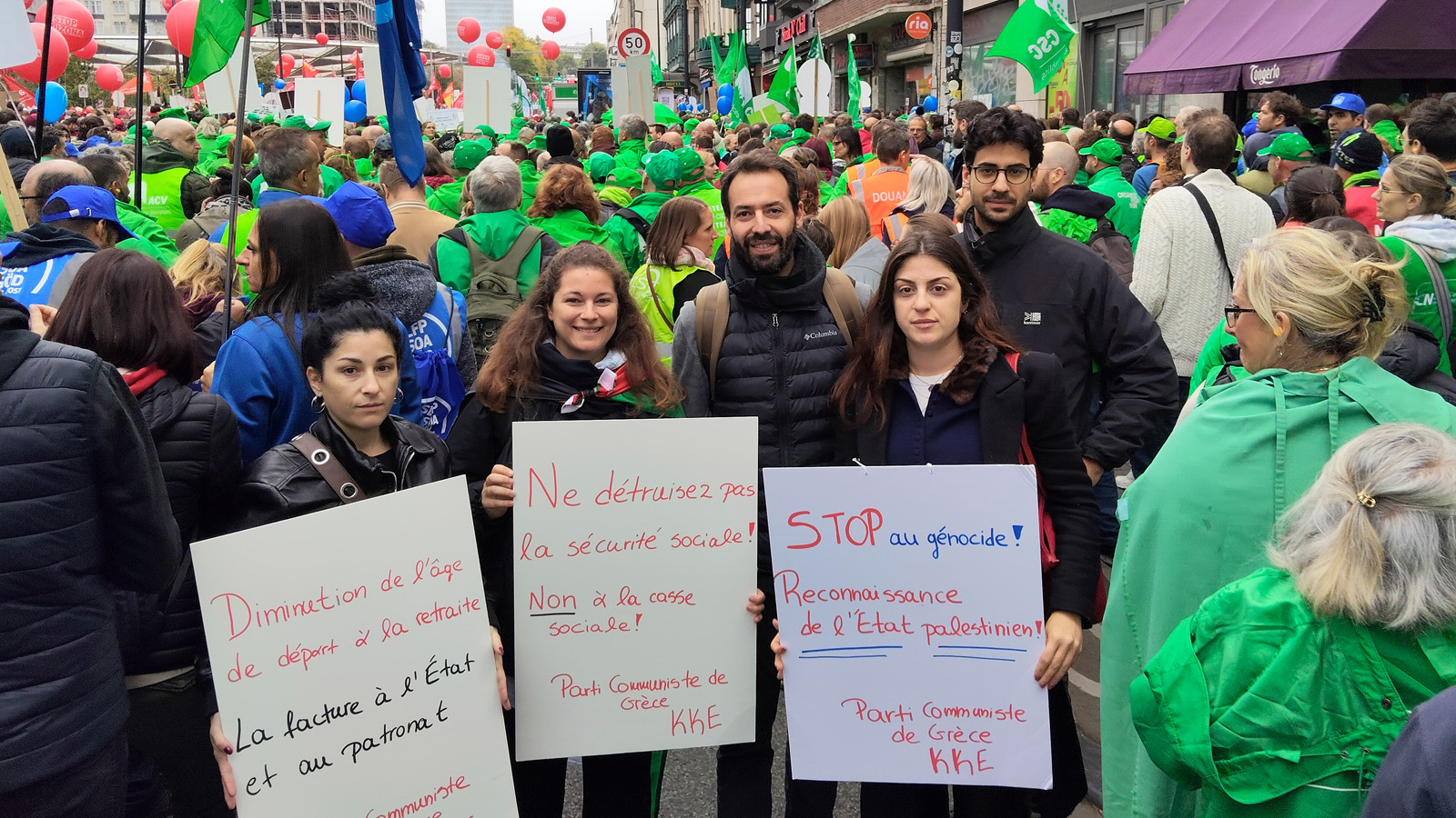 Την αντίθεσή τους στην αντεργατική πολιτική της βελγικής κυβέρνησης και της ΕΕ διατράνωσαν σήμερα 14 Οκτώβρη στις Βρυξέλλες, με τη μαζική και επιτυχημένη απεργία τους, εκατοντάδες χιλιάδες εργαζόμενοι, ενώ ενδεικτικό είναι ότι «νέκρωσαν» μεγάλοι εργασιακοί χώροι και στρατηγικής σημασίας κλάδοι σε όλη τη χώρα.Οι Βέλγοι εργαζόμενοι βλέπουν χρόνο με το χρόνο το εισόδημα τους να μειώνεται, τα όρια συνταξιοδότησης να αυξάνονται, μεγάλες περικοπές στην κοινωνική ασφάλιση και τα εργατικά- συνδικαλιστικά δικαιώματα. Η νέα κυβέρνηση μάλιστα επιδιώκει να μειώσει δραματικά τα επιδόματα ανεργίας, να δυσκολέψει τους όρους για να λαμβάνει κανείς το επίδομα, καταργεί την προσμέτρηση του χρόνου άδειας μητρότητας στο συντάξιμο χρόνο και περικόπτει δραστικά τις κοινωνικές δαπάνες.Στην απεργιακή συγκέντρωση και κινητοποίηση συμμετείχαν οι οργανώσεις του ΚΚΕ και της ΚΝΕ στις Βρυξέλλες, αντιπροσωπεία της Ευρωκοινοβουλευτικής Ομάδας του ΚΚΕ, με τον ευρωβουλευτή του Κόμματος, Λευτέρη Νικολάου-Αλαβάνο.
